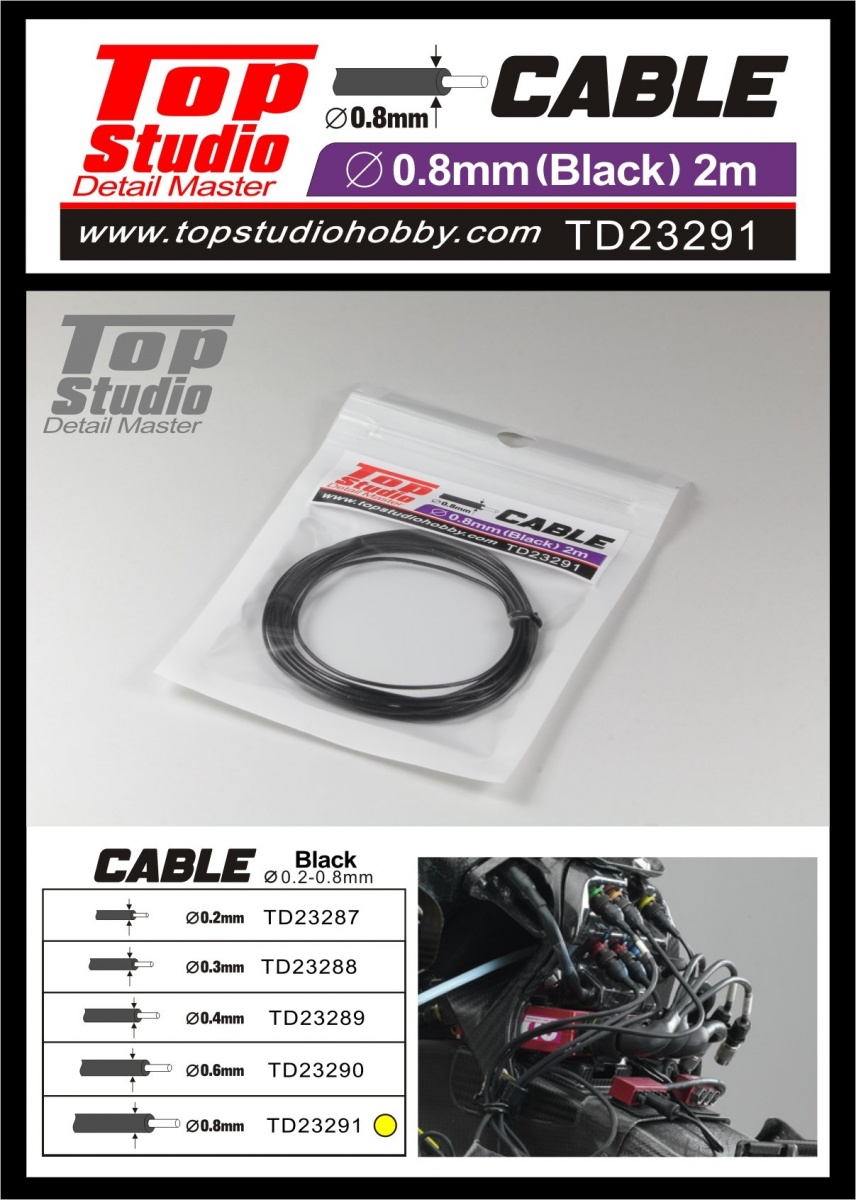 0.8mm Black Cable 2m- Top Studio
