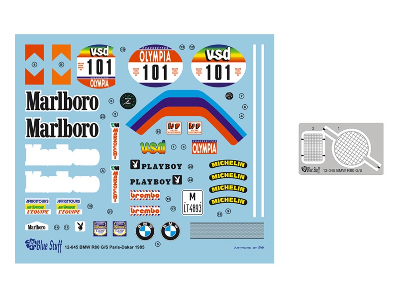 SLEVA - DISCONT - BMW R80 G/S Paris-Dakar 1985 Decals 1/12 - Blue Stuff