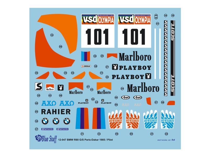 BMW R80 G/S Paris-Dakar 1985 / Pilot Decals 1/12 - Blue Stuff