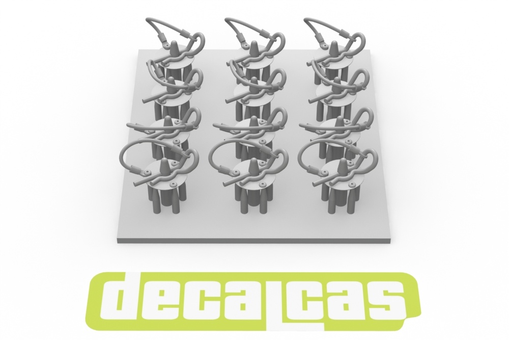 Set of hood latches with pin for 1/12 scale models. Includes a total of 12 closures made of resin by 3D printing. It includes 4 different positions of the closure lock so that you can give more realism to your models, by not repeating the same configuration in all the closures.