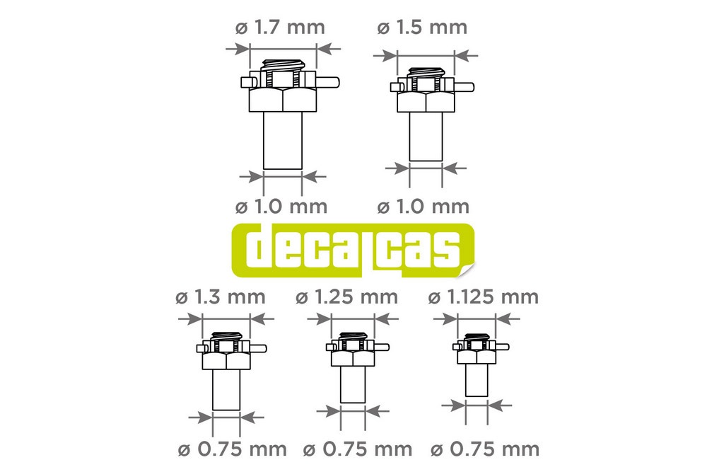 pin in the following sizes: 1.125mm, 1.25mm, 1.3mm, 1.5mm and 1.70mm