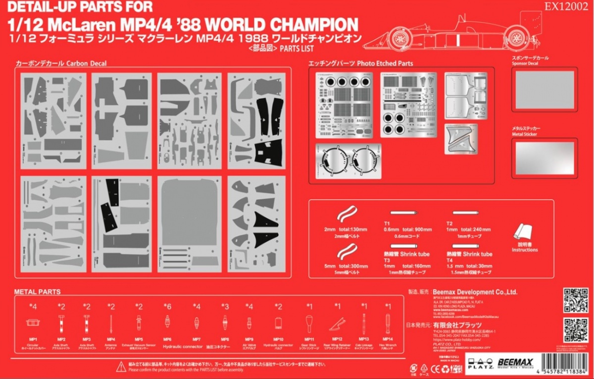 Detail Up Part for McLaren MP4/4 1988 Monaco 1:12 - BEEMAX