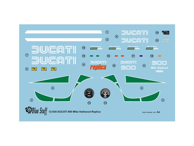 DUCATI 900 Mike Hailwwod Replica 1/12 Decals - Blue Stuff