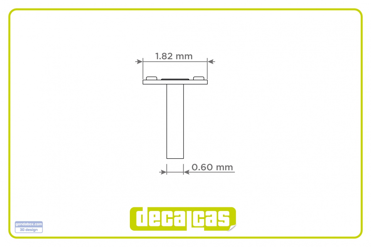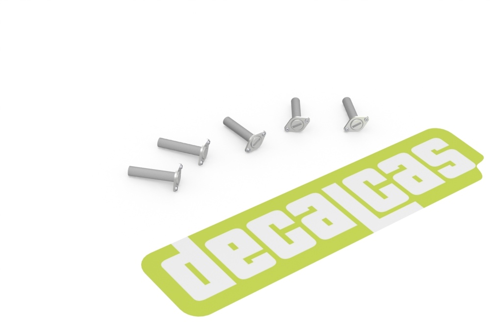 Dzus type quick release fasteners with large rhomboid base (Type 2) at 1/24 scale, with a width of 1,82 mm. Made in resin by 3D printing, they reproduce all the details, such as the mounting rivets. They are extremely thin, and have a 0.6 mm diameter support rod for mounting, which will allow you to fix them with precision. Made with the usual quality of DECALCAS products, you only have to worry about painting and gluing on your scale model.