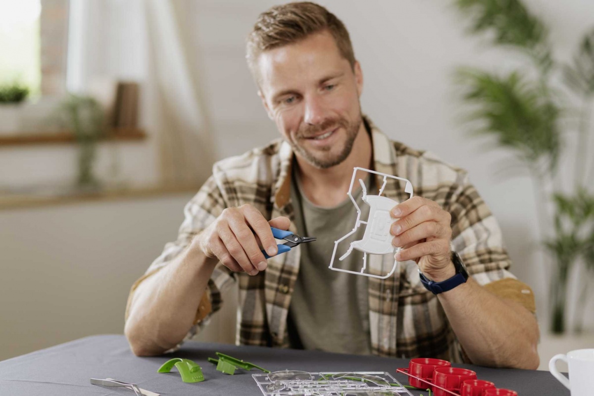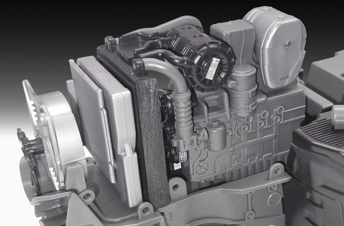 Zacvakávací model traktoru. Velikost: 1:20; 27,8 cm. Balení obsahuje: 212 dílků ke složení.