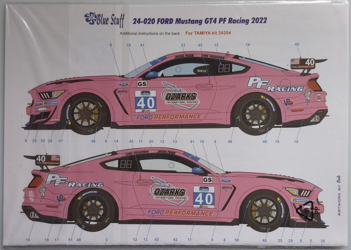 SLEVA - DISCONT - FORD Mustang GT4 PF Racing 2022 Decals 1/24 - Blue Stuff
