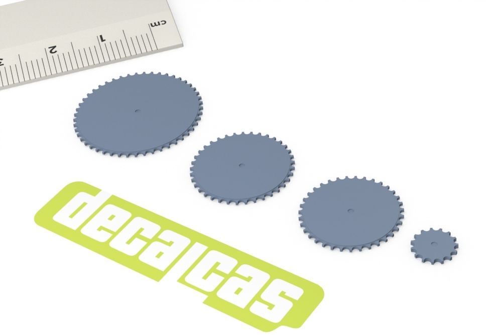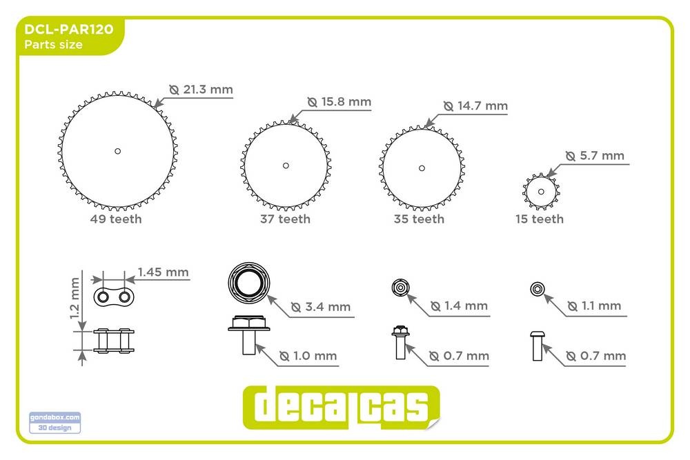 Complete 1/12 scale chain gear drive set that includes 3 rear