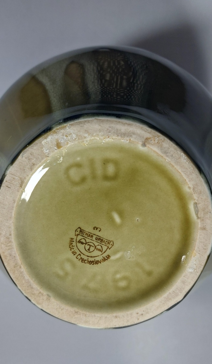 Váza z produkce porcelánky Ditmar Urbach, 70. léta 20. století, zdobena pod glazurou abstraktním dekorem, glazovaný porcelán, značeno viz. foto. r. 1975.