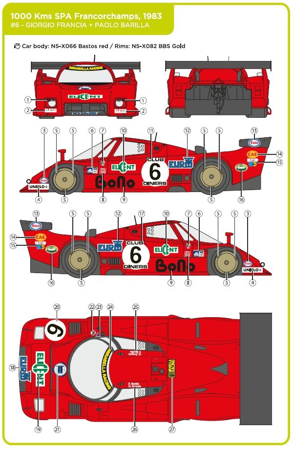 Decals to make the decoration of the Lancia LC2 that raced in the SPA