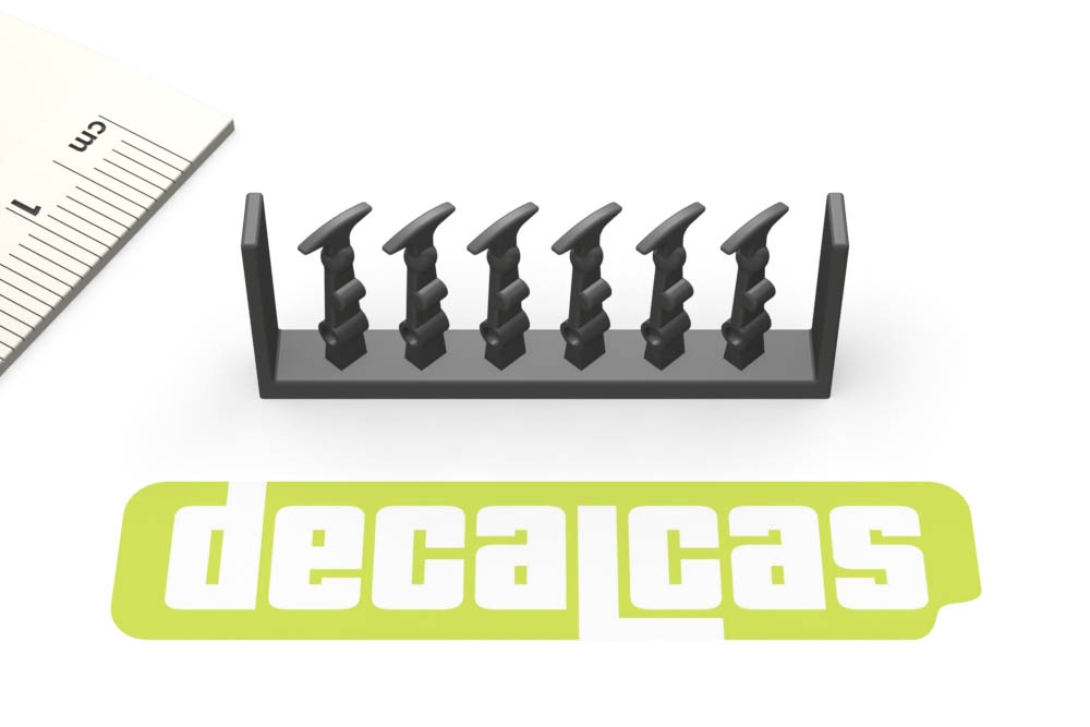 Set of bonnet latches in 1/12 scale. Includes a total of 8 closures made of