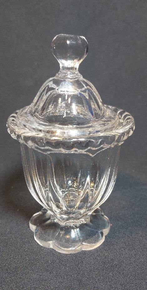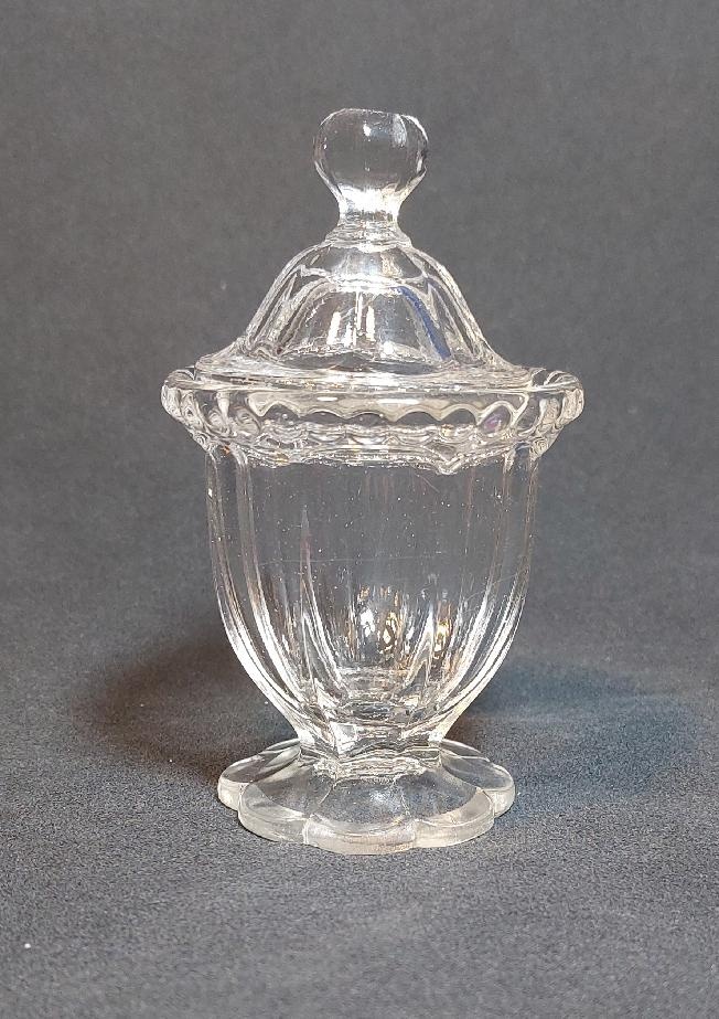 Nádobka na med z lisovaného skla jako praktický doplněk na Váš stůl.