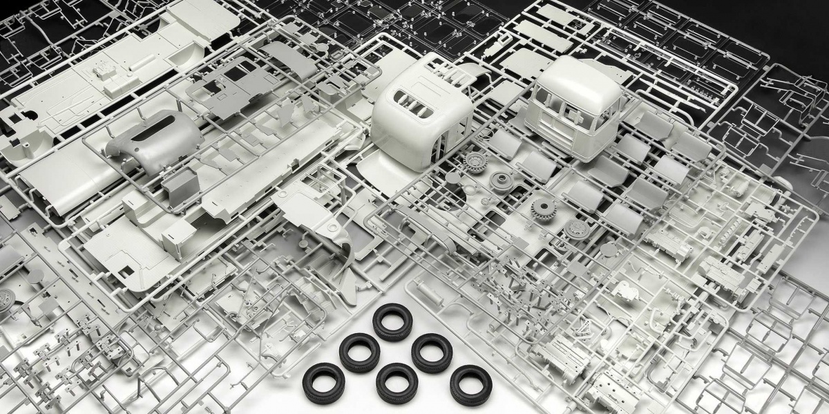 Model autobusu ke slepení. Velikost: 1:24; 38,1 cm. Balení obsahuje: 391 dílků ke slepení.