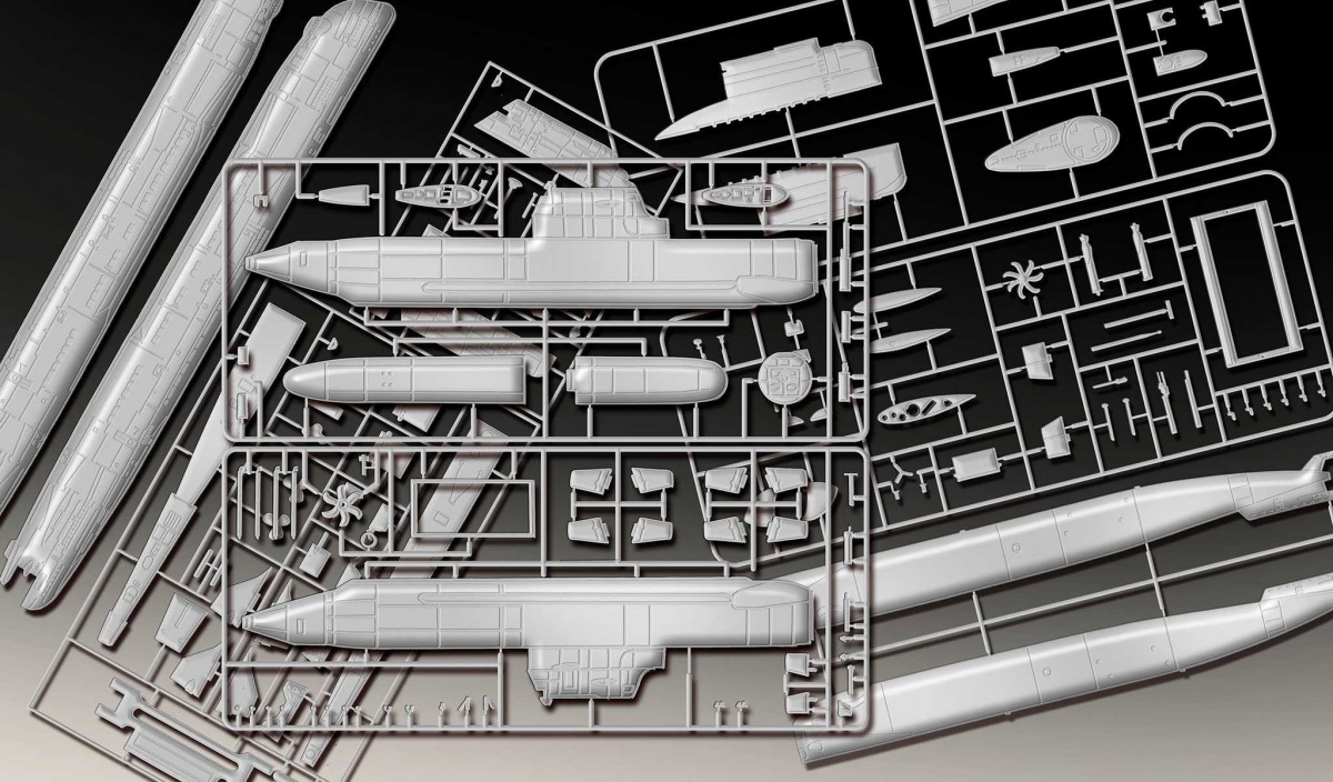 Modely ponorek ke slepení. Velikost: 1:144. Balení obsahuje: 154 dílků ke slepení.